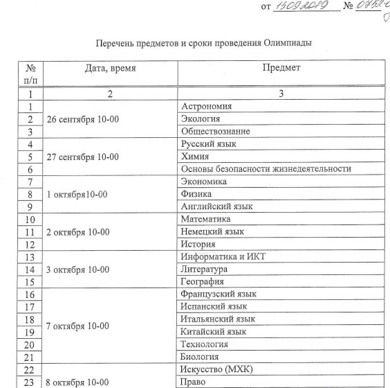 Приказ о проведении школьного этапа Всероссийской олимпиады школьников